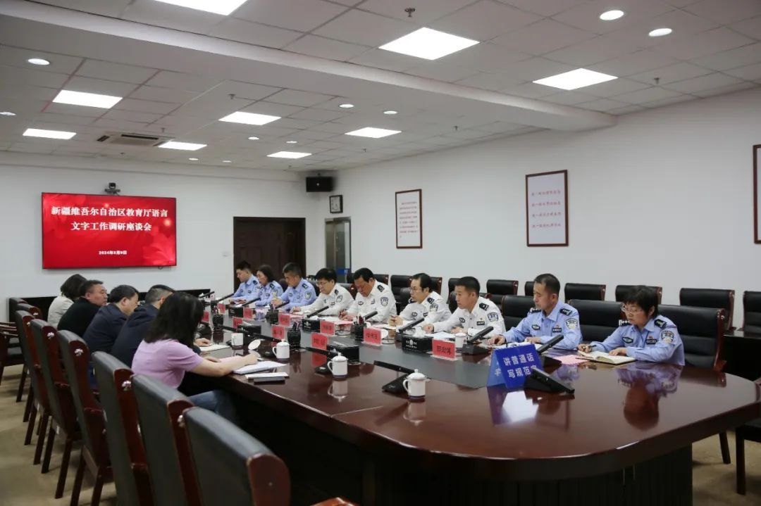 2024年5月9日下午,自治区教育厅陪同新疆维吾尔自治区教育厅二级巡视员戢广南及语信处、推普处负责人一行3人深入内蒙古警察职业学院,就推广普及国家通用语言文字工作进行调研,学院组织召开专题座谈会。学院党委书记苏和生、自治区教育厅语言文字应用管理处处长包革命出席会议,会议由内蒙古警察职业学院党委委员、副院长哈布日主持,自治区教育厅语言文字应用管理处相关人员及内蒙古警察职业学院党委班子成员、语委办工作人员参加会议。