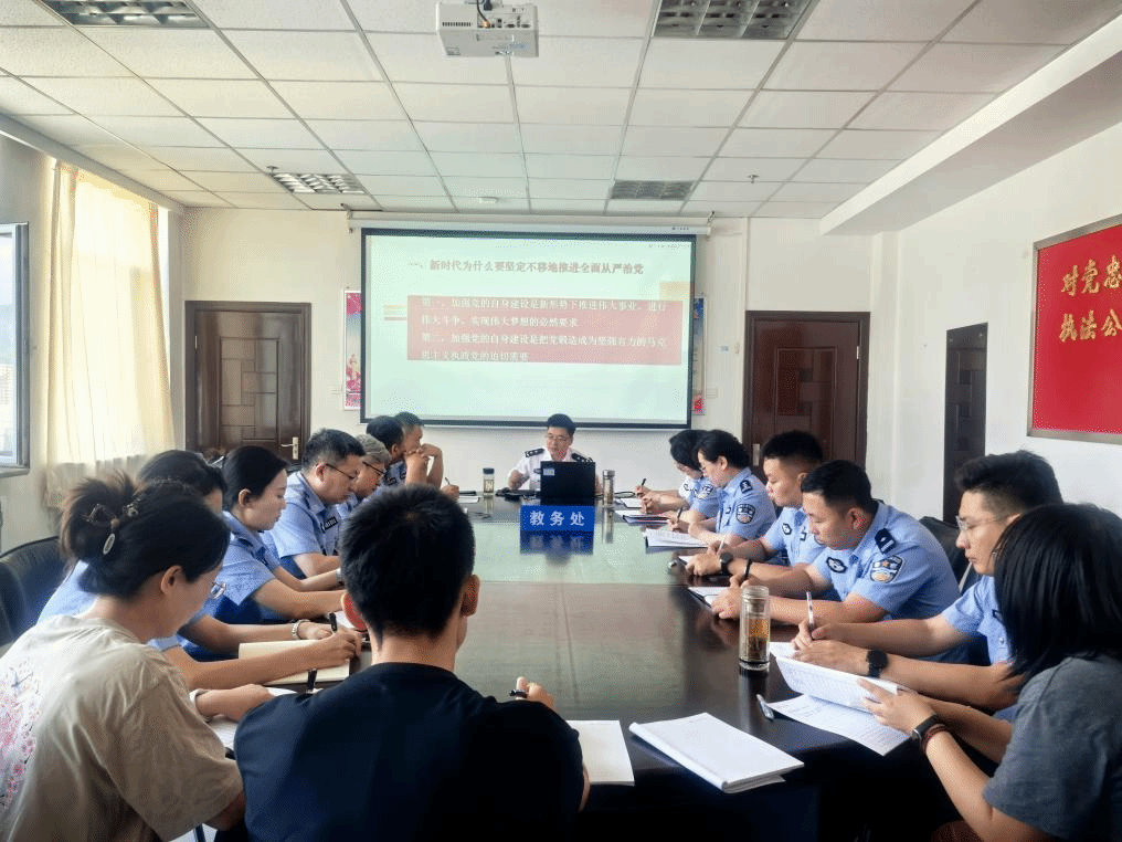 为庆祝中国共产党成立 104 周年,推动深入贯彻中央八项规定精神学习教育走深走实,提升党员干部的党性修养和政治觉悟,根据学院统一部署要求,7月8日,学院领导郭志忠在其所在的教务处党支部,为全体教职工讲授题为《全面从严治党》的纪律作风专题党课。